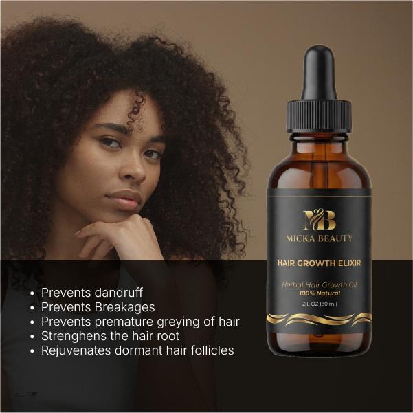 By incorporating MICKA hair growth elixir into your hair routine, you can help restore hair growth, stimulate the bulbs that nourish strands, and promote overall health and well-being for the roots of your hair for its growth