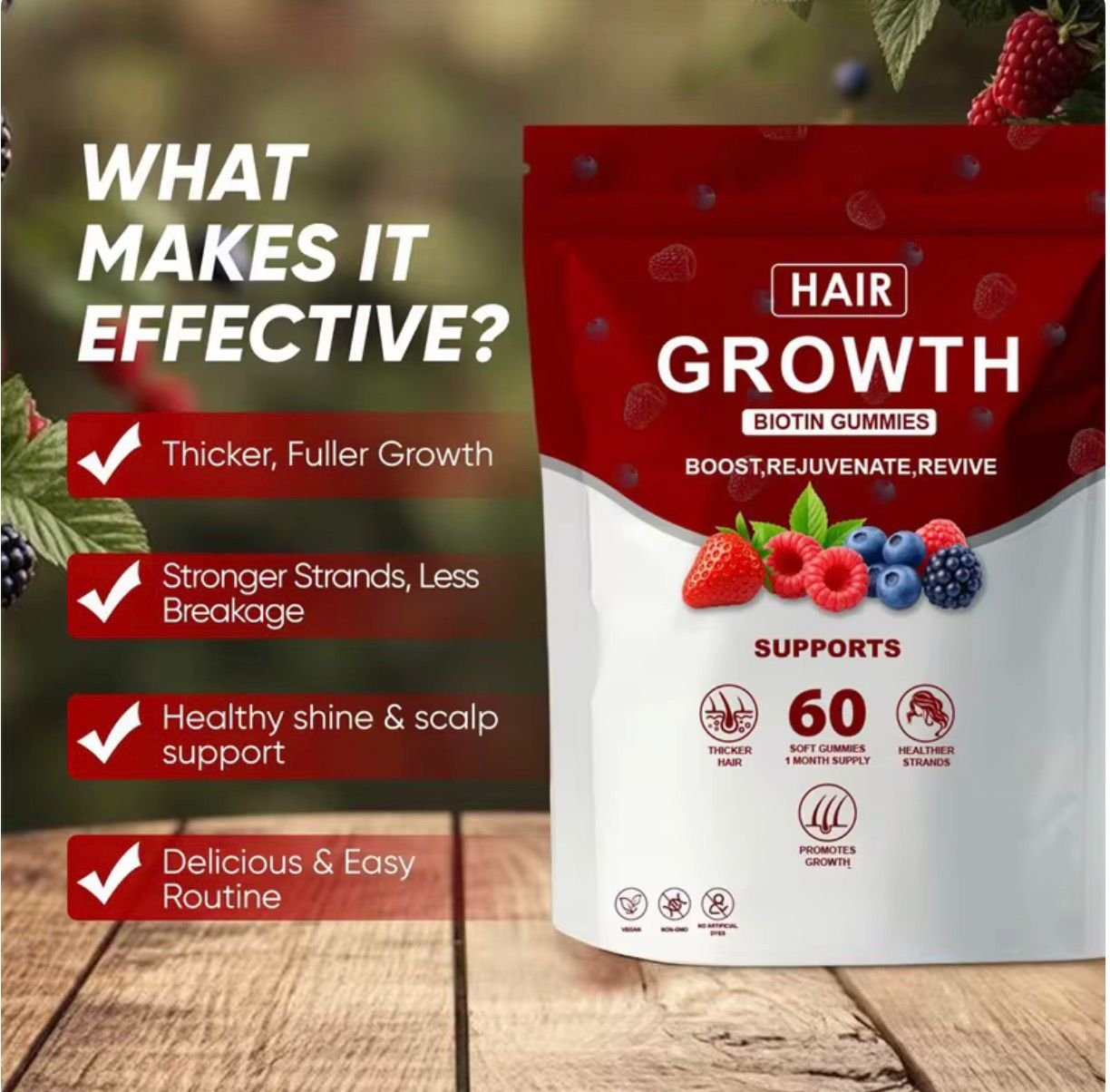 PROMOTE THICKER, FULLER, HEALTHIER HAIR: Hair Growth Accelerator is a revolutionary new formula, available in soft chews or capsules, designed to rapidly improve the health, strength, thickness, and growth of hair.