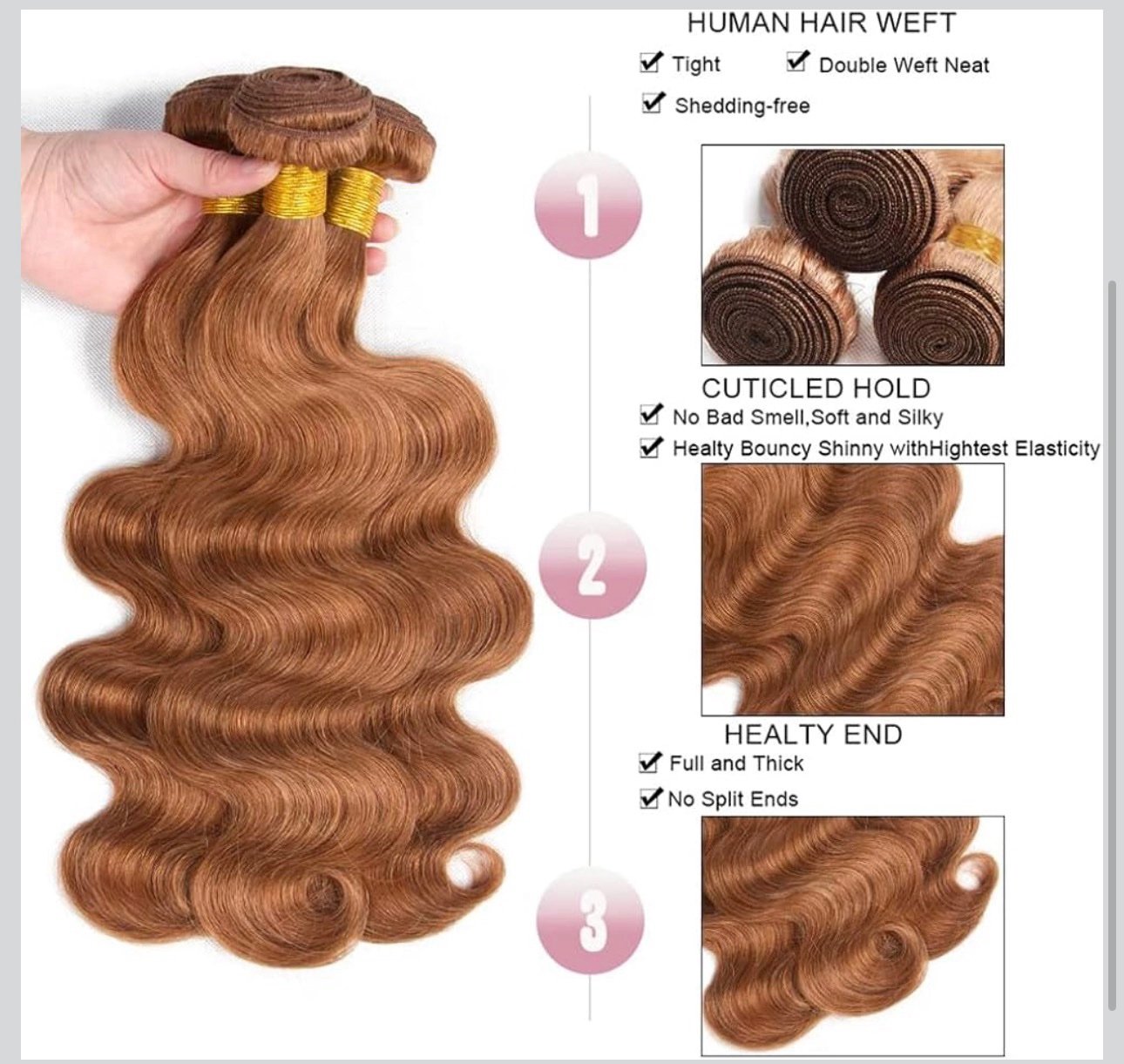 screenshotLight Brown Bundles Human Hair Color #30 Body Wave Bundles 24 26 28 Inch Virgin Remy Mixed Length Light Brown Body Wave Bundle Hair Weave 300g