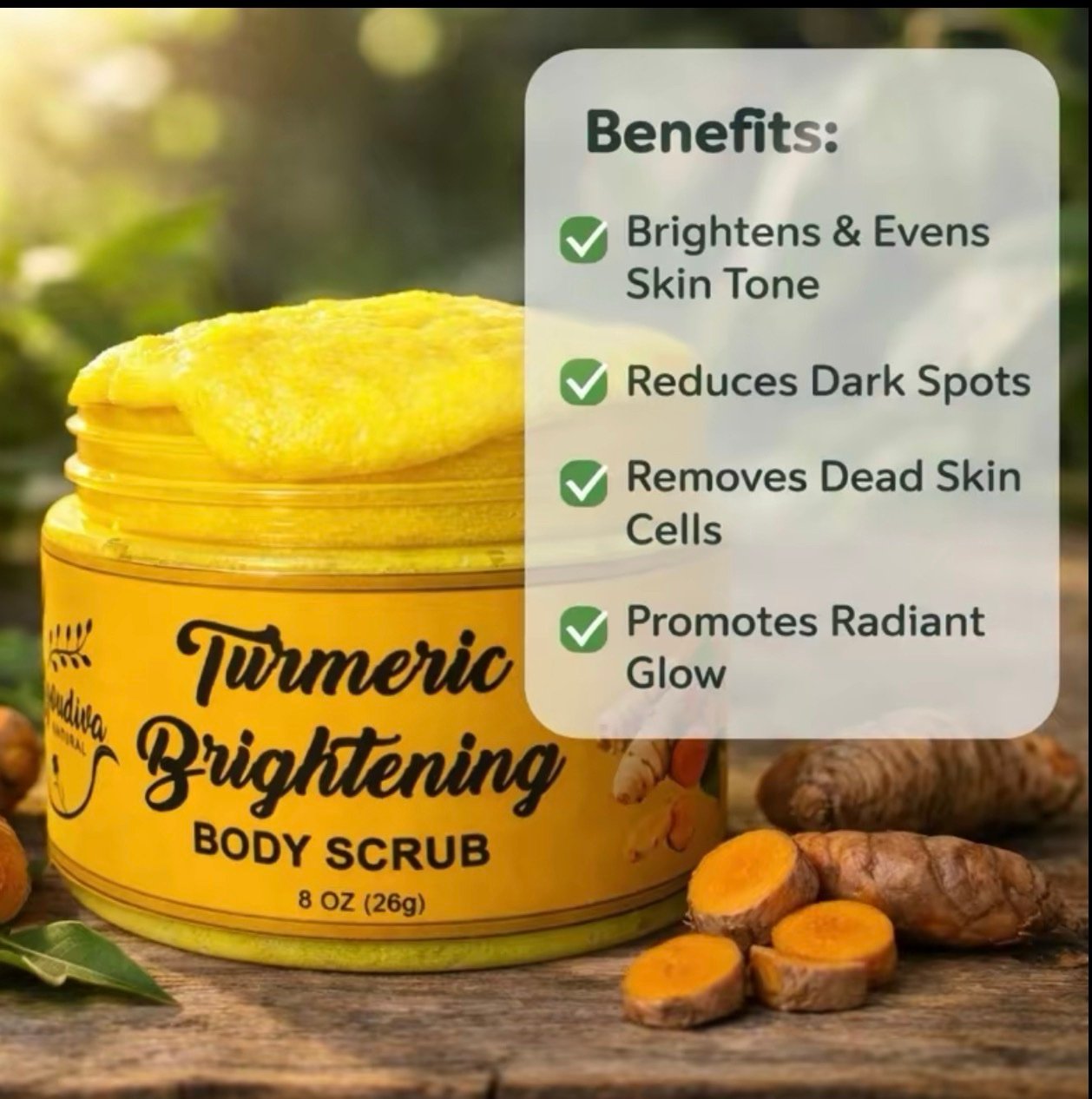 screenshotTurmeric Body Scrub – Acne, Dark Spots, Smooth Skin, Face Exfoliate Natural Handmade Scrub Body Care Gentle Body Wash Exfoliant 8oz